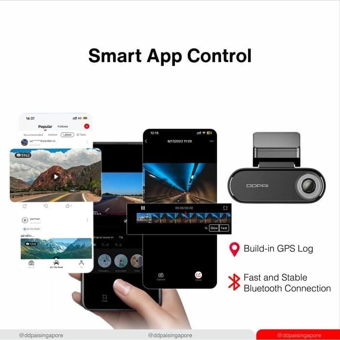 يعتمد DDPAI N5 Dual طريقة الاتصال السريع Bluetooth في المسجل، لتحل محل اتصال WiFi التقليدي. عندما يتصل الجهاز بالتطبيق، ليست هناك حاجة للعثور على جهاز WiFi.